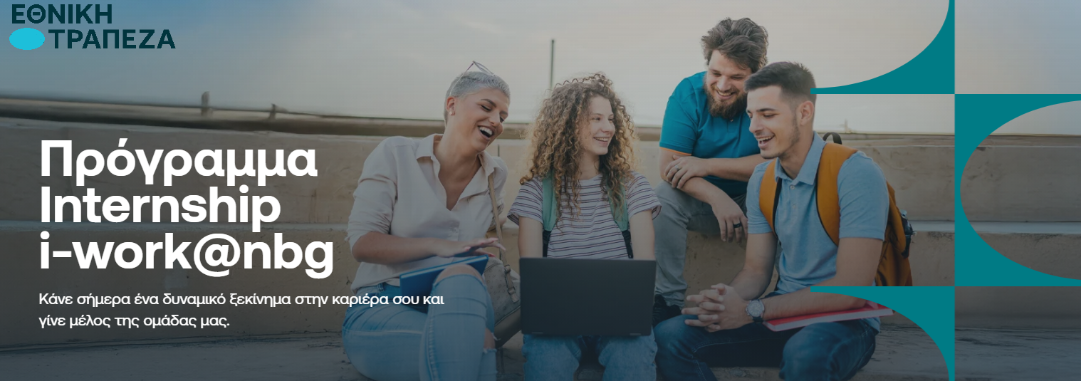 Η Εθνική Τράπεζα στηρίζει το μέλλον των νέων και ανακοινώνει το νέο κύκλο του Προγράμματος Internship i-work@nbg προσφέροντας θέσεις πρακτικής άσκησης σε Κεντρικές Υπηρεσίες στην Αθήνα. Το Πρόγραμμα προβλέπει την απασχόληση 30 απόφοιτων προπτυχιακών ή τελειόφοιτων / απόφοιτων μεταπτυχιακών προγραμμάτων σπουδών της τελευταίας τριετίας, στους οποίους θα δοθεί η δυνατότητα έμμισθης πρακτικής άσκησης, πλήρους απασχόλησης, διάρκειας 10 μηνών, για την απόκτηση επαγγελματικής εμπειρίας σε εξειδικευμένους τομείς της Τράπεζας.